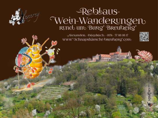 Eventscheune im Programm. Eine geführte Wanderung zu den Weinbergen am Breuberger Burgberg, dem Felsenkeller und durch das Presshaus mit Brennerei. Ein
